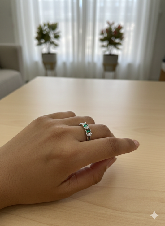 925 Sterling Silver Green Stone Band Ring for Women | Elegant Daily Wear Silver Ring
