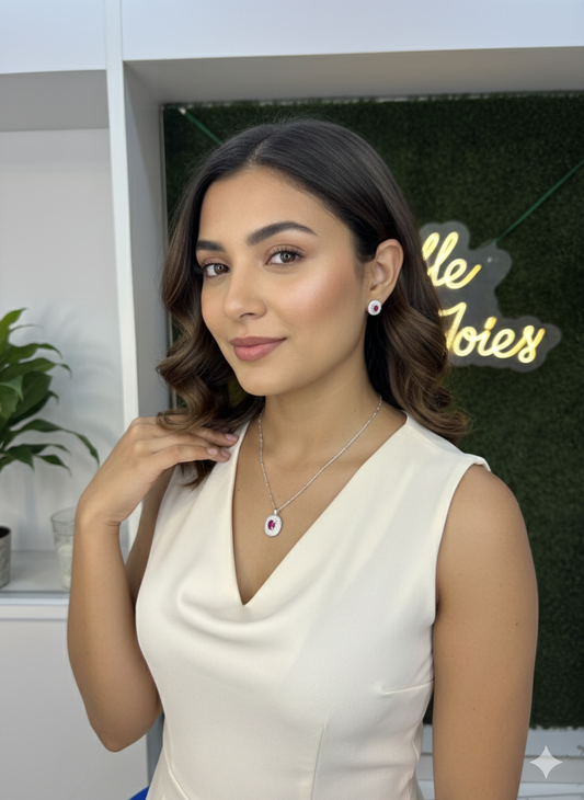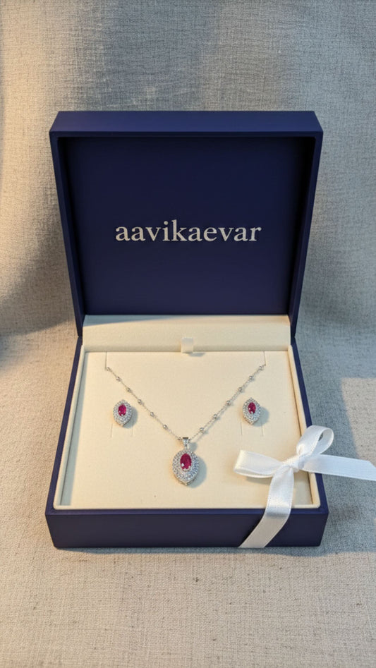 Aavikazevar 925 Sterling Silver pink color stone Pendant Necklace with Matching Stud Earrings | Cubic Zirconia Diamond-Look Jewellery Set for Women & Girls