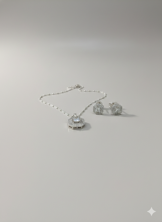 Aavikazevar 925 Sterling Silver squre Pendant Necklace with Matching Stud Earrings | Cubic Zirconia Diamond-Look Jewellery Set for Women & Girls