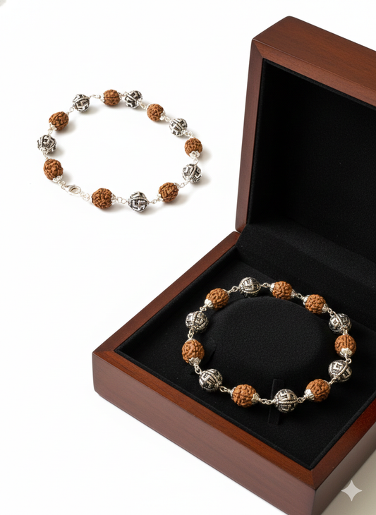Silver swastik Rudraksha Link Bracelet for Men & Women