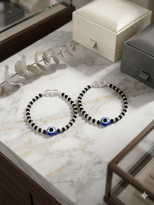 Silver Evil Eye Nazariya Bracelets – Minimalist Black Bead Set