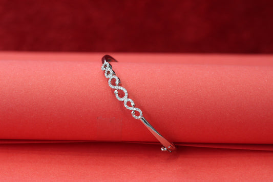 925 Sterling Silver Infinity Link Kada Bracelet for Women | Elegant CZ Studded Openable Silver Bangle | Daily Wear & Party Jewellery