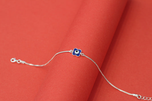 Aavikazevar Minimal Silver Bracelet evil eye with box chain
