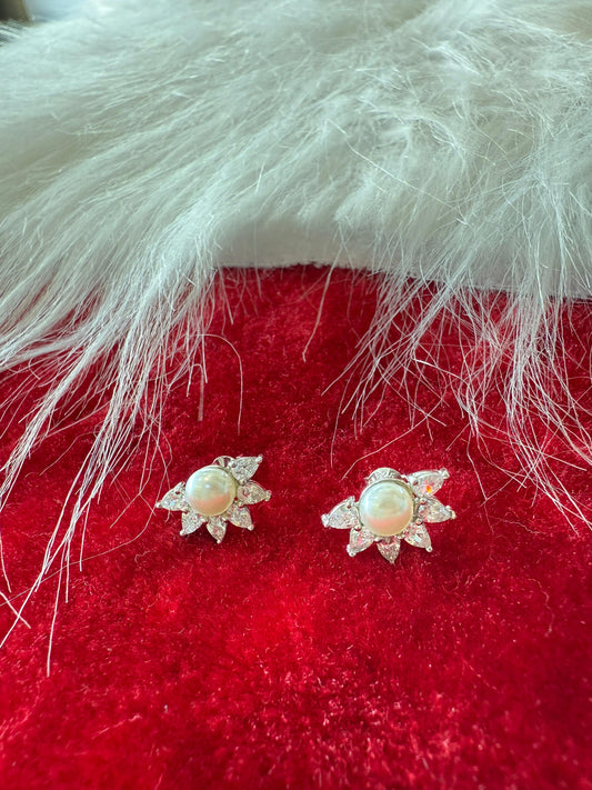 Aavika Zevar Sterling Silver Pearl Stud Earrings for Women & Girls | Elegant Teardrop Design