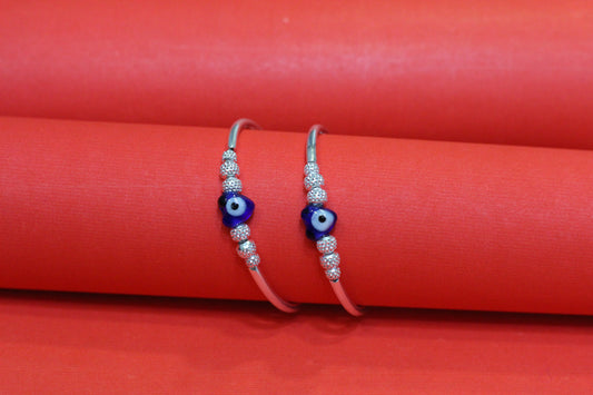 Born baby Silver Kids Bangles with heart shap Evil Eye Beads
