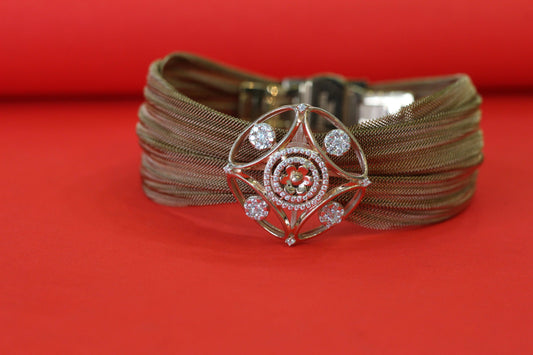 Elegant Italian 925 Silver Mesh Belt with Diamond-Style Centerpiece