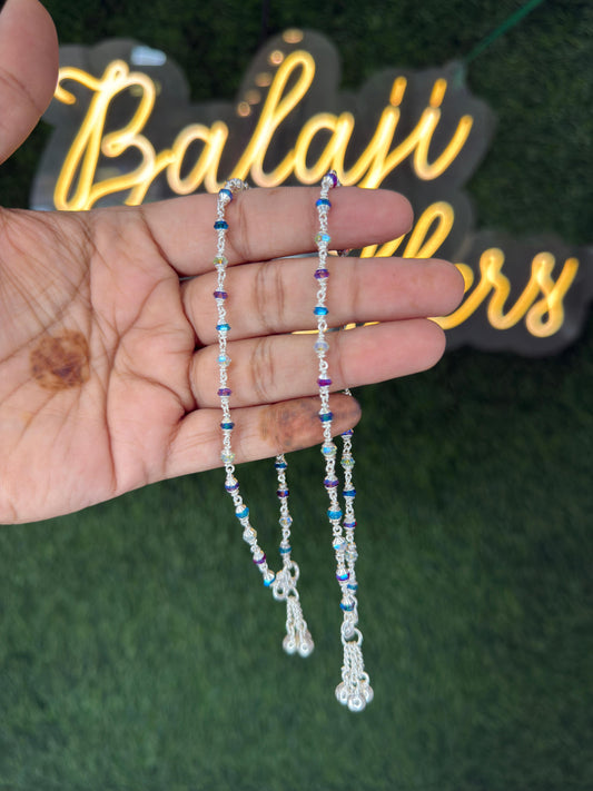 Elegant Silver Anklet with Multicolor Beads – Traditional & Stylish Payal for Women and Girls