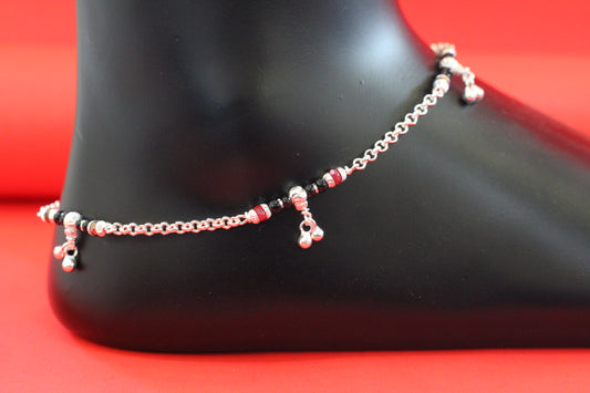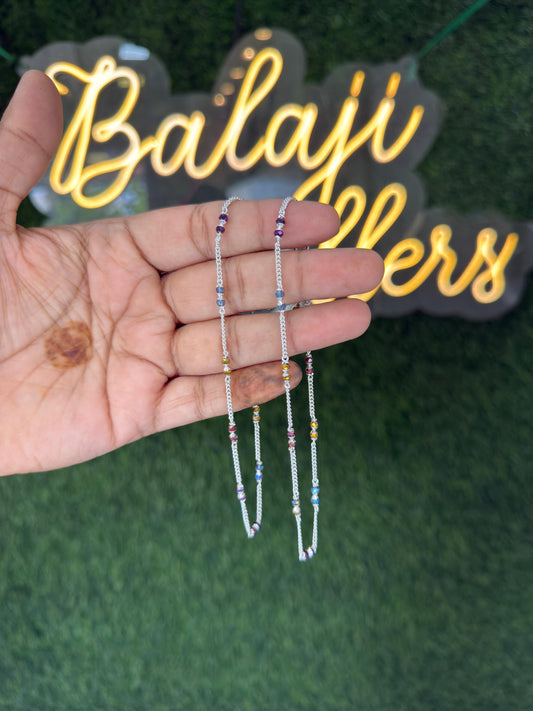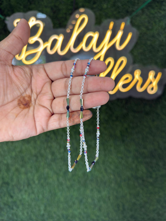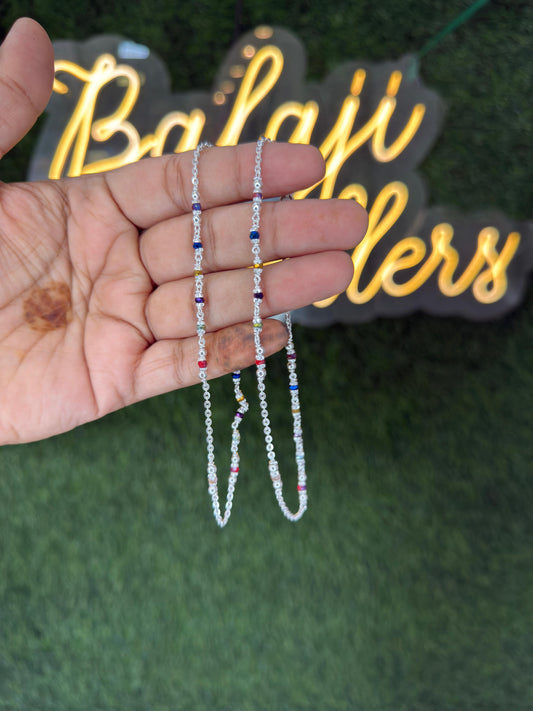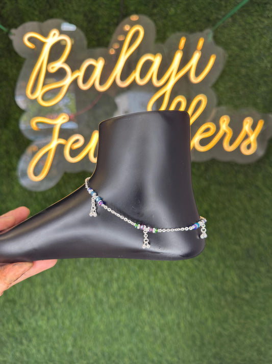 Stylish Silver Chain Anklet with multi color Beads and slik chain – Everyday Wear Sterling Silver Payal