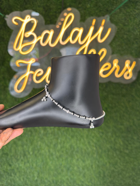 Silver Anklet with Round Beads – “Pearl Drop Design” Payal for Daily Wear
