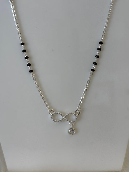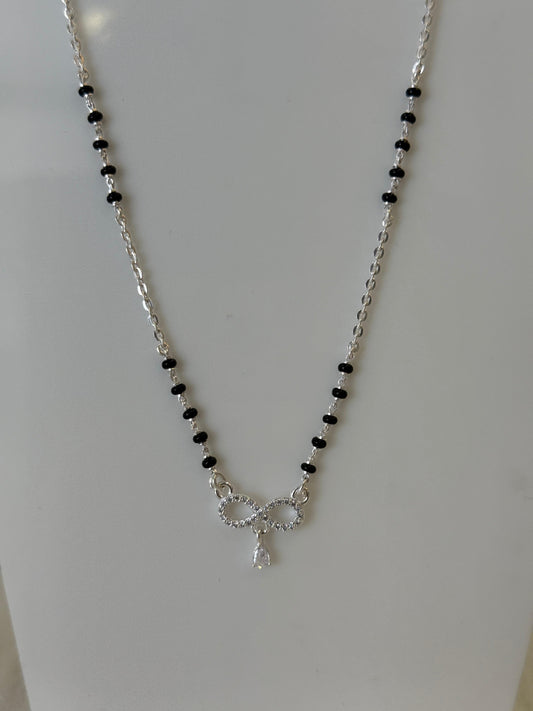 Silver Mangalsutra with CZ infinity Pendant | Daily Wear Black Beads Chain for Women | Lightweight Traditional Jewelry