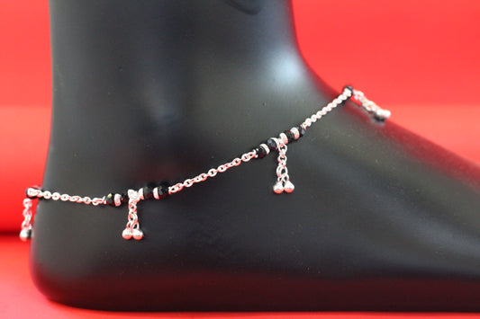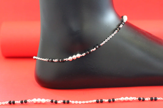 Silver Anklet for Women & Girls | Traditional Black Beads Payal | Stylish Daily Wear Silver Anklet Jewelry