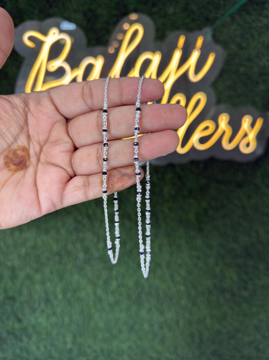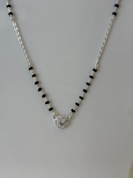Silver Mangalsutra with single stud Pendant | Daily Wear Black Beads Chain for Women | Lightweight Traditional Jewelry