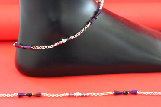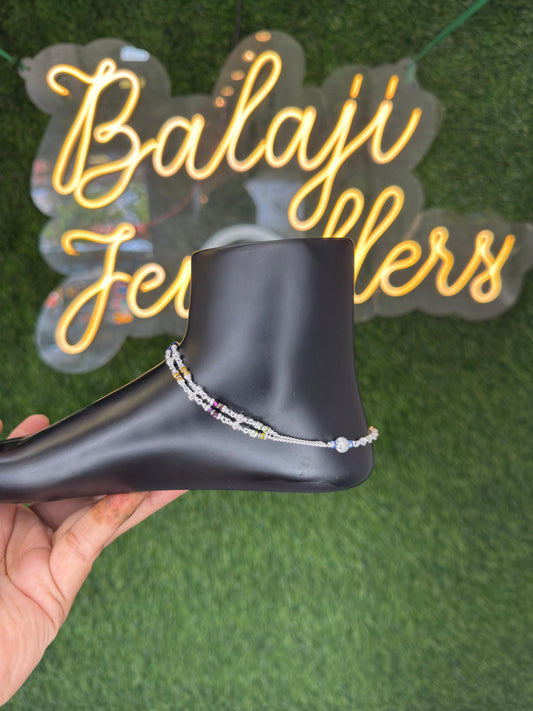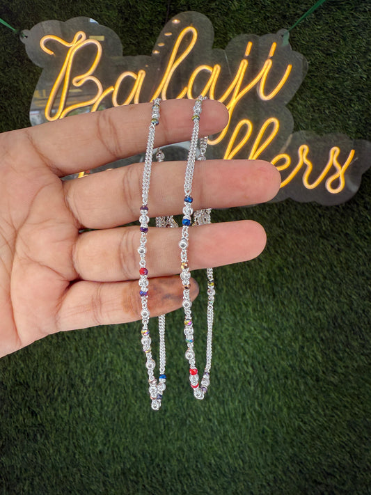 Elegant Silver Anklet with Multicolor Beads for Women & Girls with linked chain