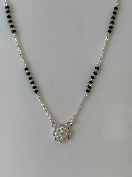 Silver Mangalsutra with flower Pendant | Daily Wear Black Beads Chain for Women | Lightweight Traditional Jewelry