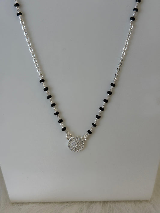 Silver Mangalsutra with round Pendant | Daily Wear Black Beads Chain for Women | Lightweight Traditional Jewelry