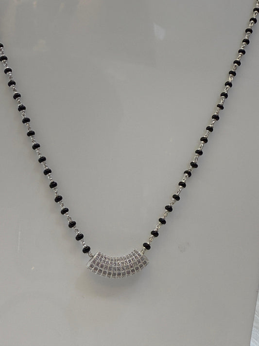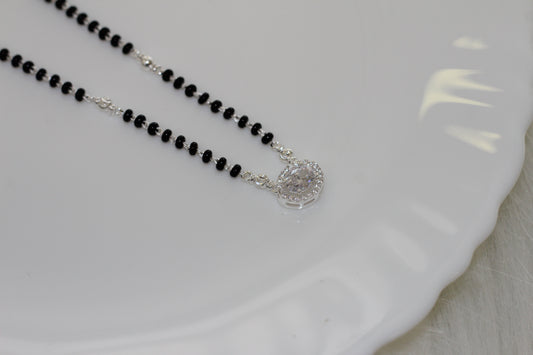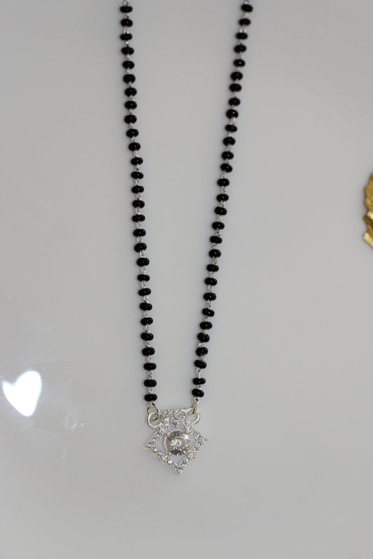 Elegant Silver-Plated Mangalsutra with CZ Stone Pendant