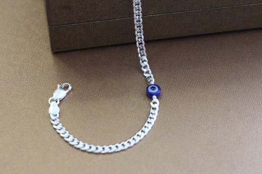 Pure Silver currap Bracelet with evil eye for Men | Flexible evil eye currap Pattern | Elegant Casual & Party Wear