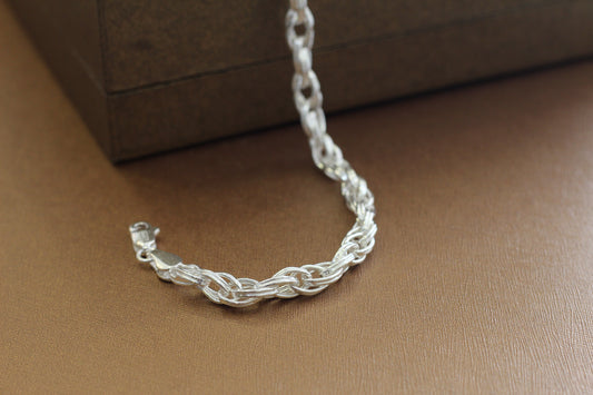 Silver Men’s Bracelet | Stylish Interlinked Knot Chain Bracelet for Men | Classic Daily Wear Silver Kada Bracelet