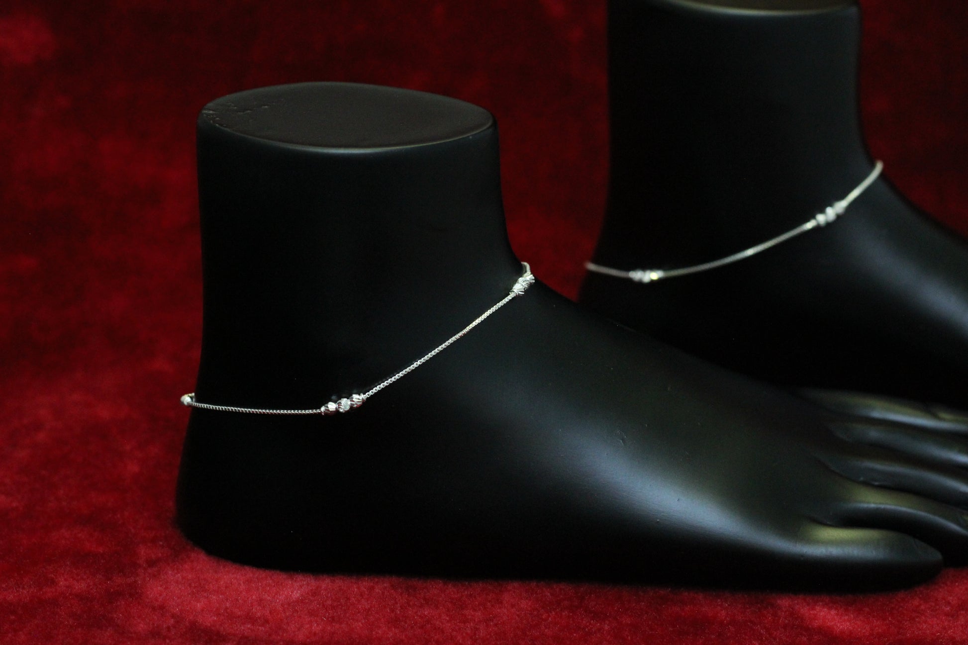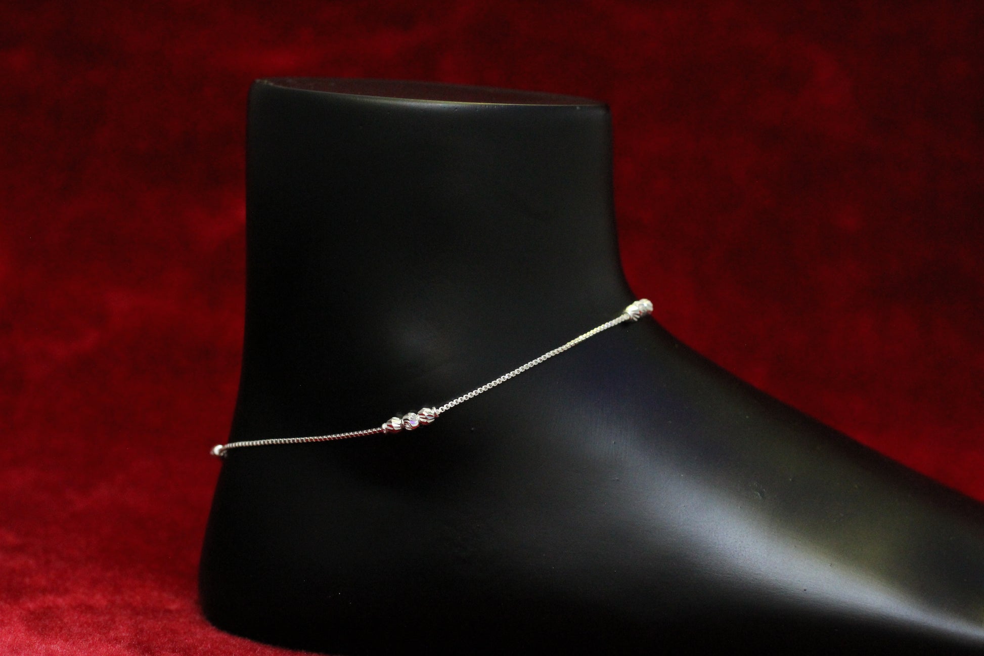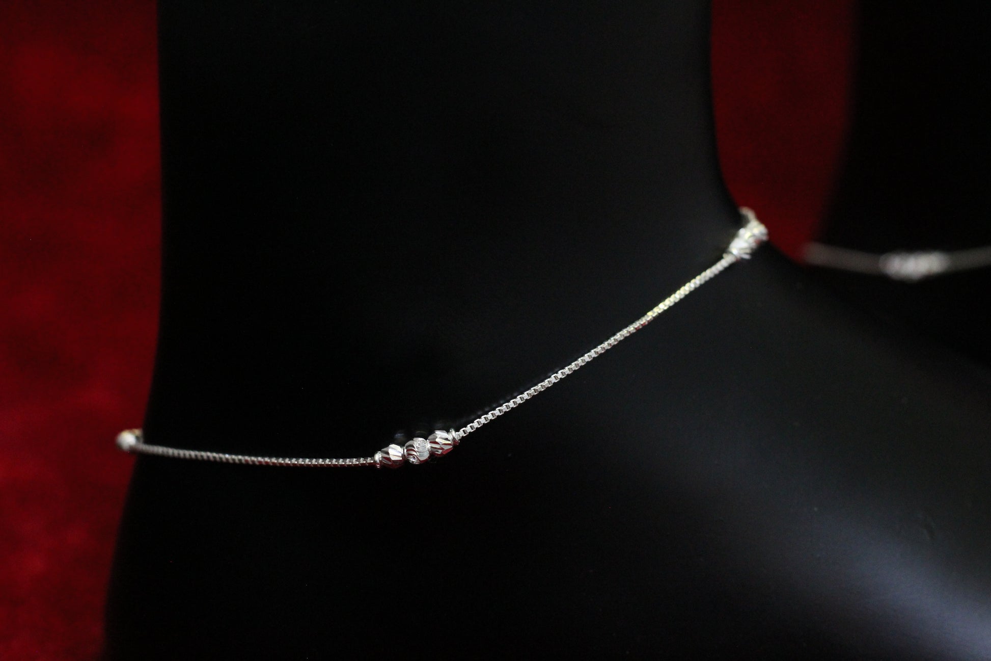 925 Sterling Silver Simple Box Chain Anklet with Bead Accents for Women & Girls – Lightweight Daily Wear Payal