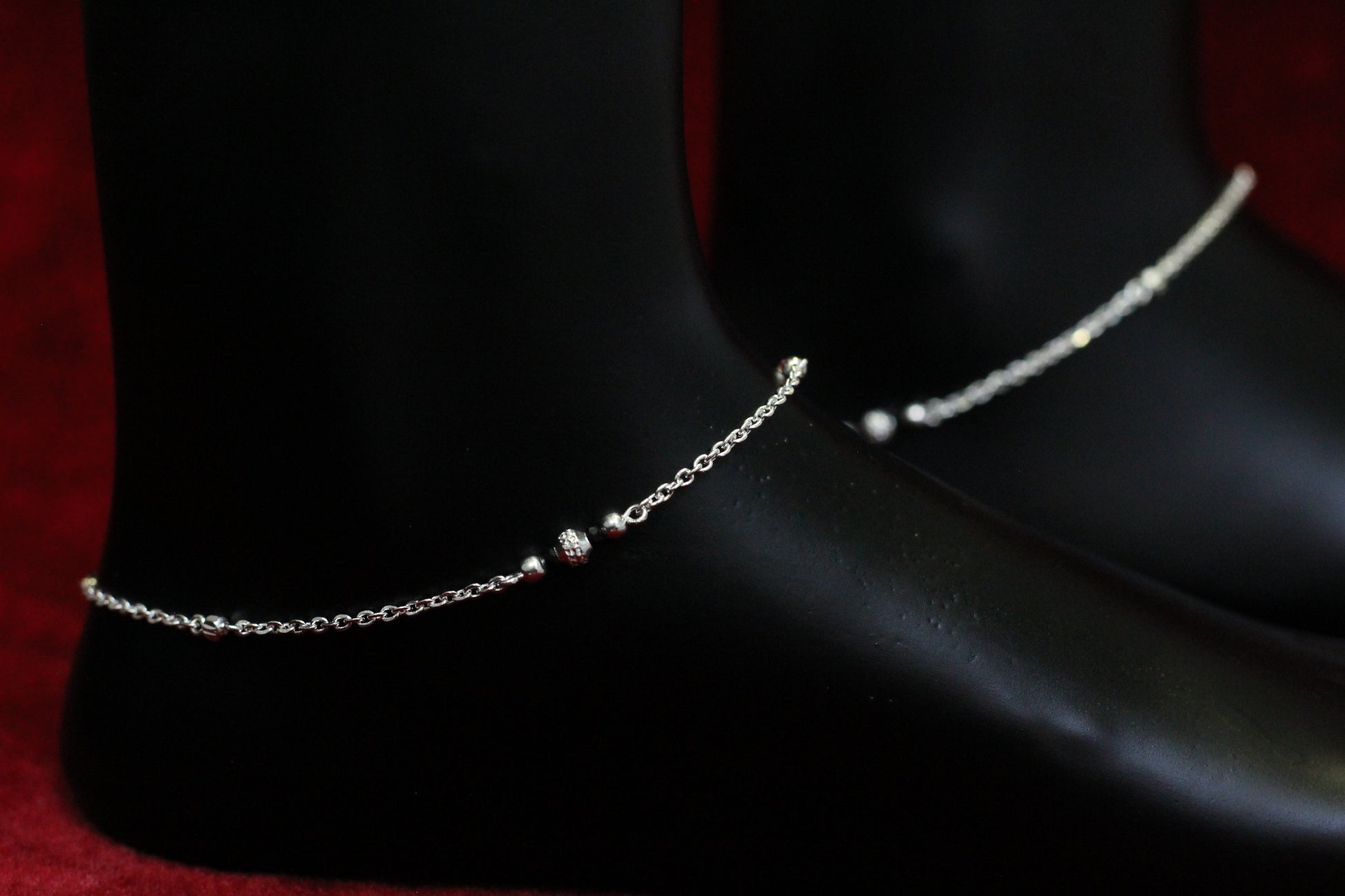 925 Sterling Silver Simple Box Chain Anklet with black Bead Accents for Women & Girls – Lightweight Daily Wear Payal