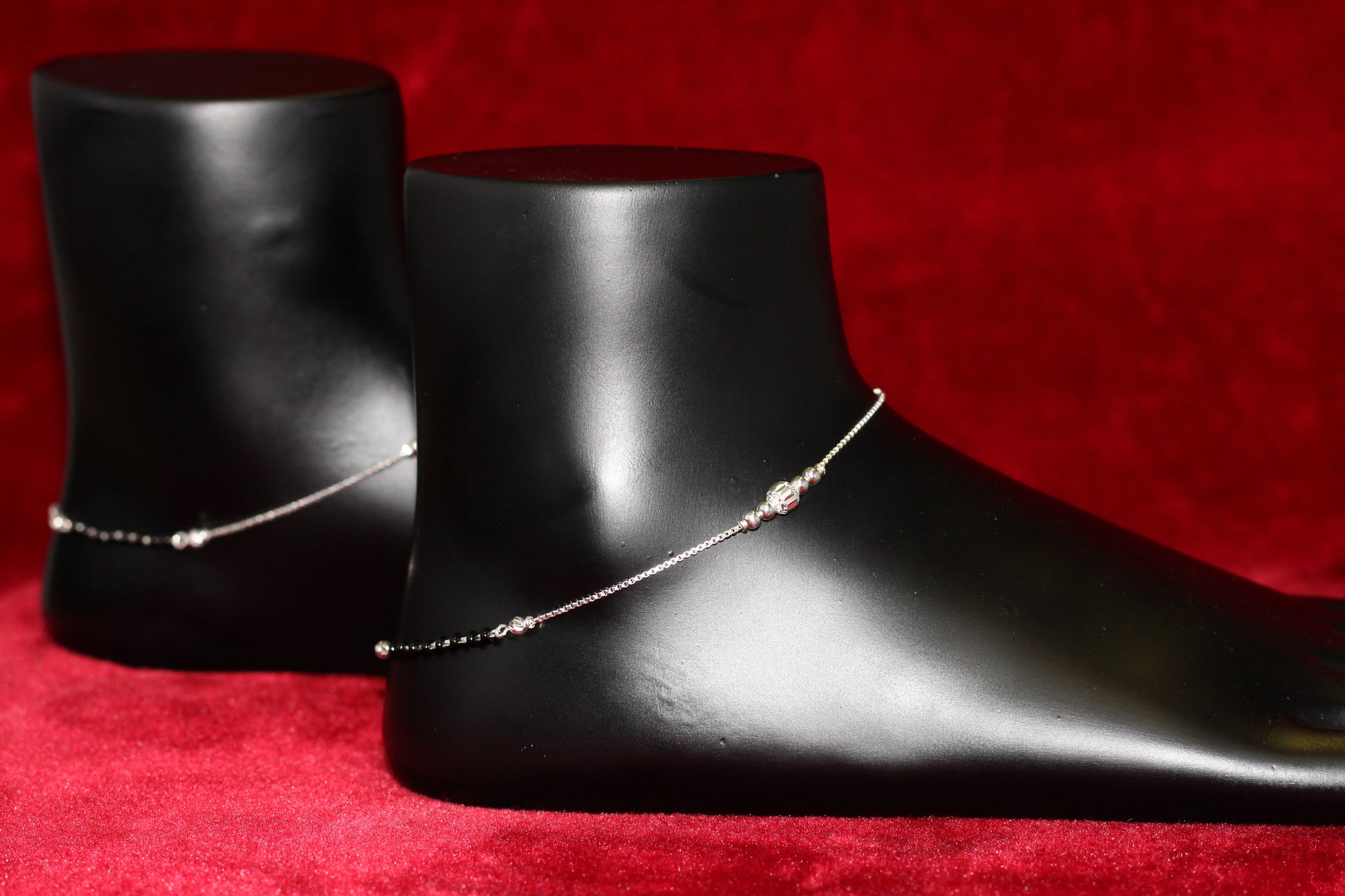925 Sterling Silver Simple Box Chain Anklet with silver Bead Accents for Women & Girls – Lightweight Daily Wear Payal
