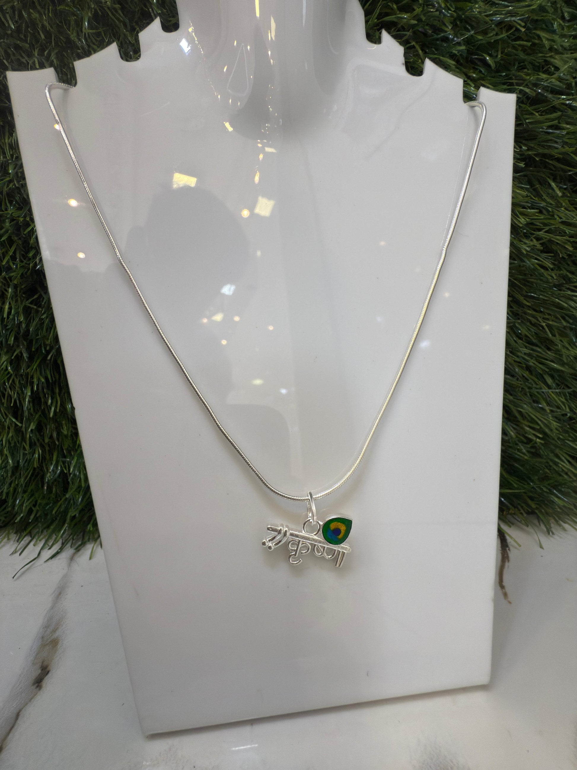 Handcrafted with precision, this silver necklace showcases Lord Krishna’s serene charm, symbolizing peace, love, and positivity.
