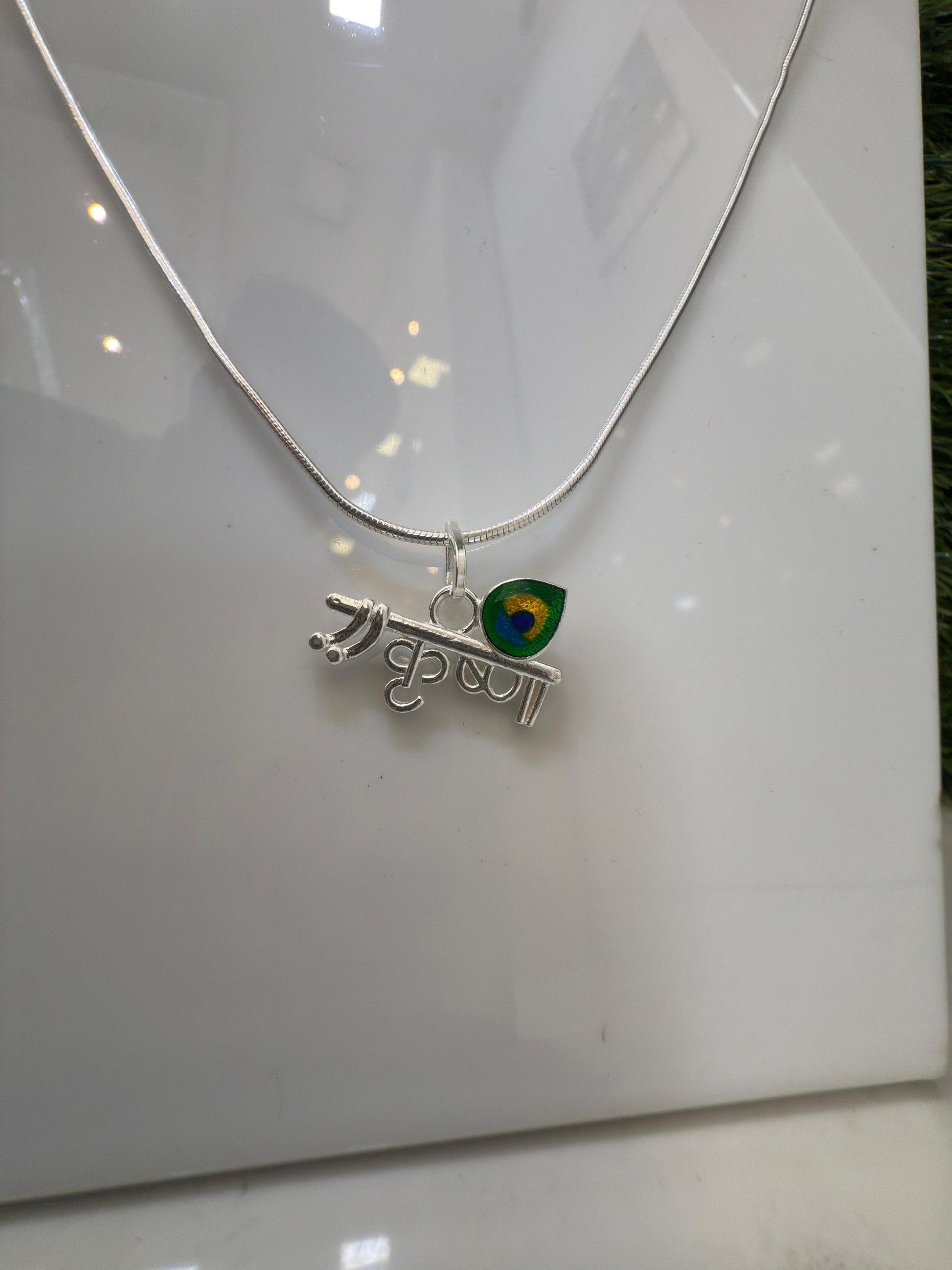 Aavikazevar 925 Sterling Silver Krishna Pendant with Chain for Men & Women | Pure Silver Spiritual Necklace | Elegant Daily Wear Jewelry | Ideal Gift for Devotees