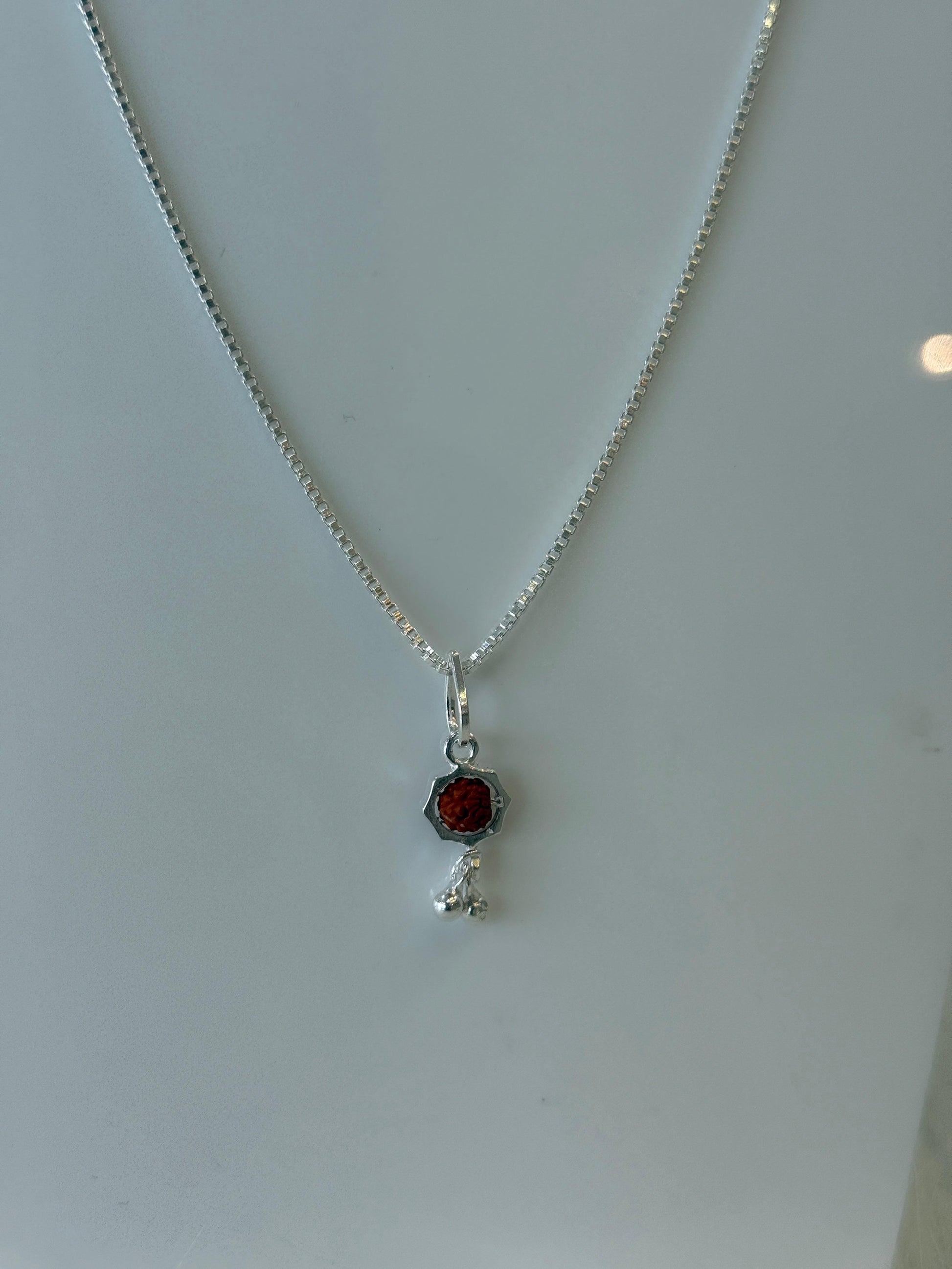 Embrace divine elegance with the Aavikazevar 925 Sterling Silver rudraksha Pendant with 925 silver box Chain — a perfect blend of spirituality and modern minimalism.