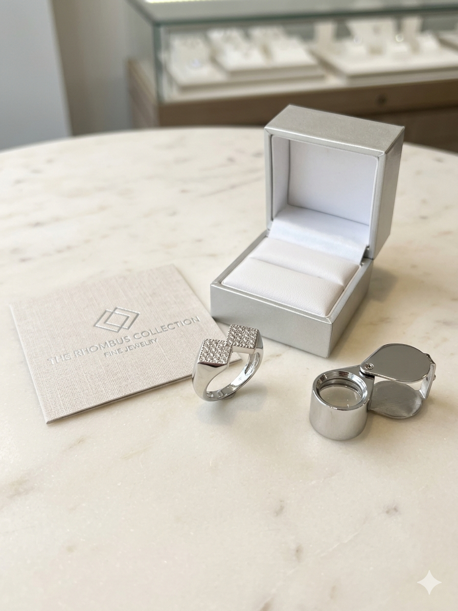 Men’s Elite 925 Sterling Silver Geometric Rhombus Ring – Cubic Zirconia Studded