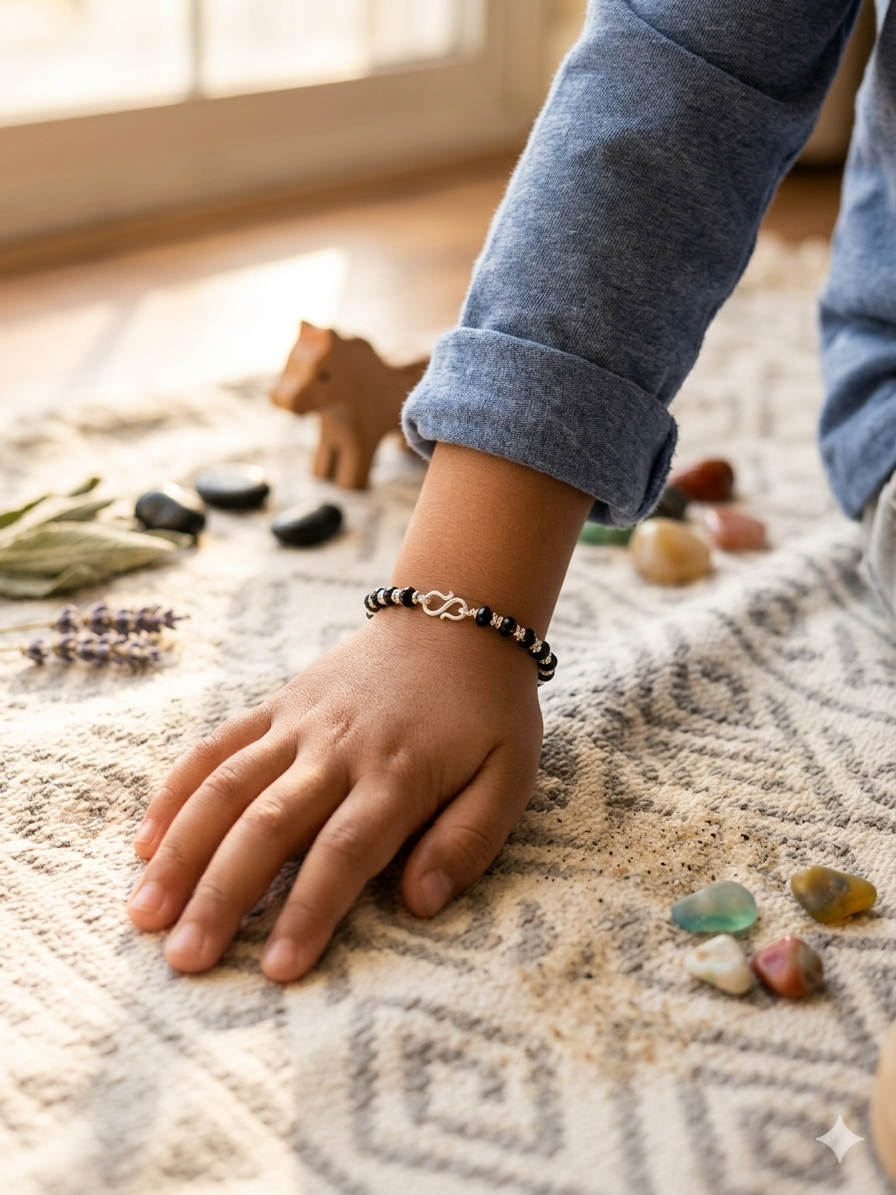 Protect your little one with this beautifully handcrafted 925 silver baby nazariya, designed with traditional black beads. The silver detailing adds a touch of elegance while ensuring durability and comfort for everyday wear.